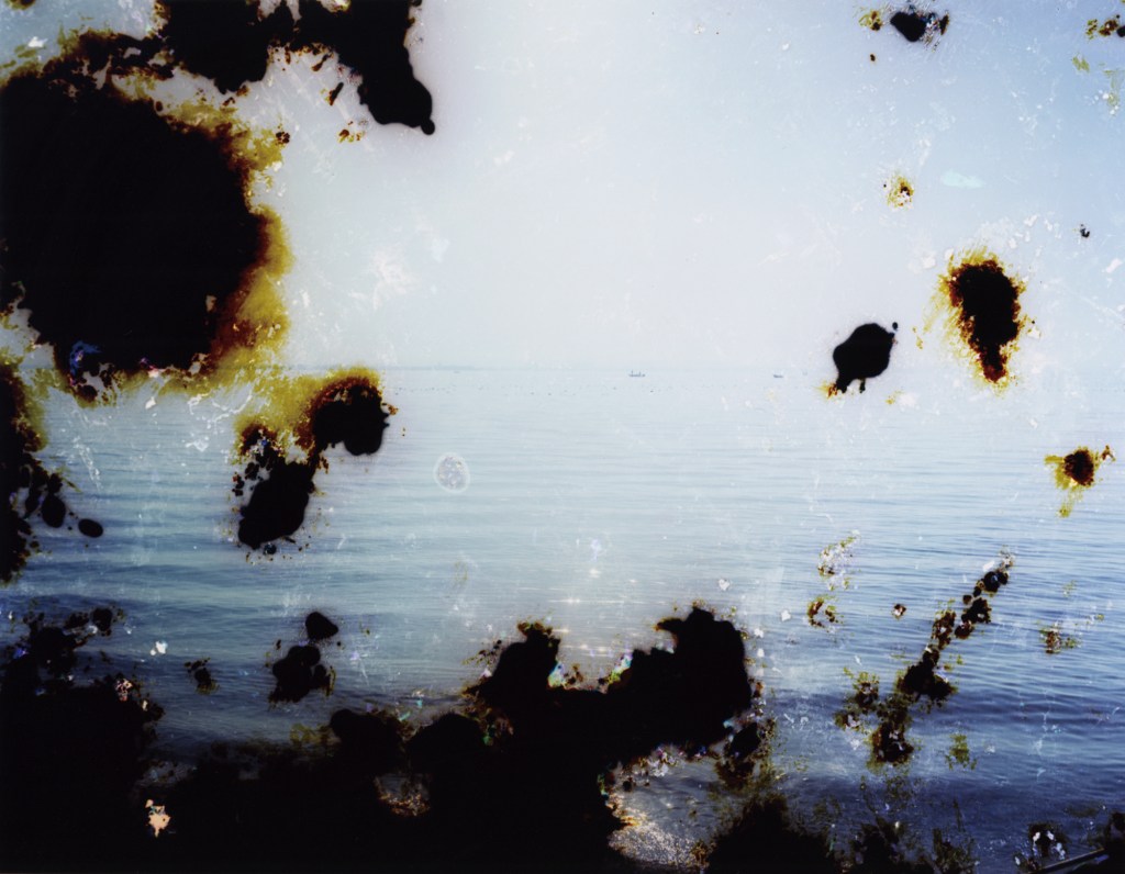 My portraits of glass placed between people and the water reveal memories of the modern city. I photographed glass that is witness to drastic changes of the landscape due to human activity: seawall windows along the coastline, the former shoreline of Tokyo Bay, the historic Lake Biwa Canal, the remains of artificial islands. Once the photographic film was developed, I treated it like the glass whose images it captured. By applying organic matter, having mold grow, and exposing it to dust, sand and seawater, I let the film undergo a concentration of the natural stimuli that may befall a glass window out in the world.
