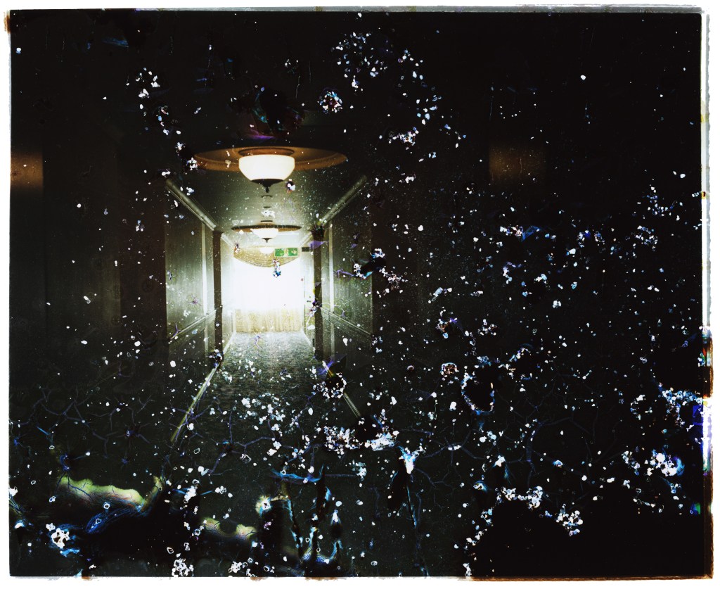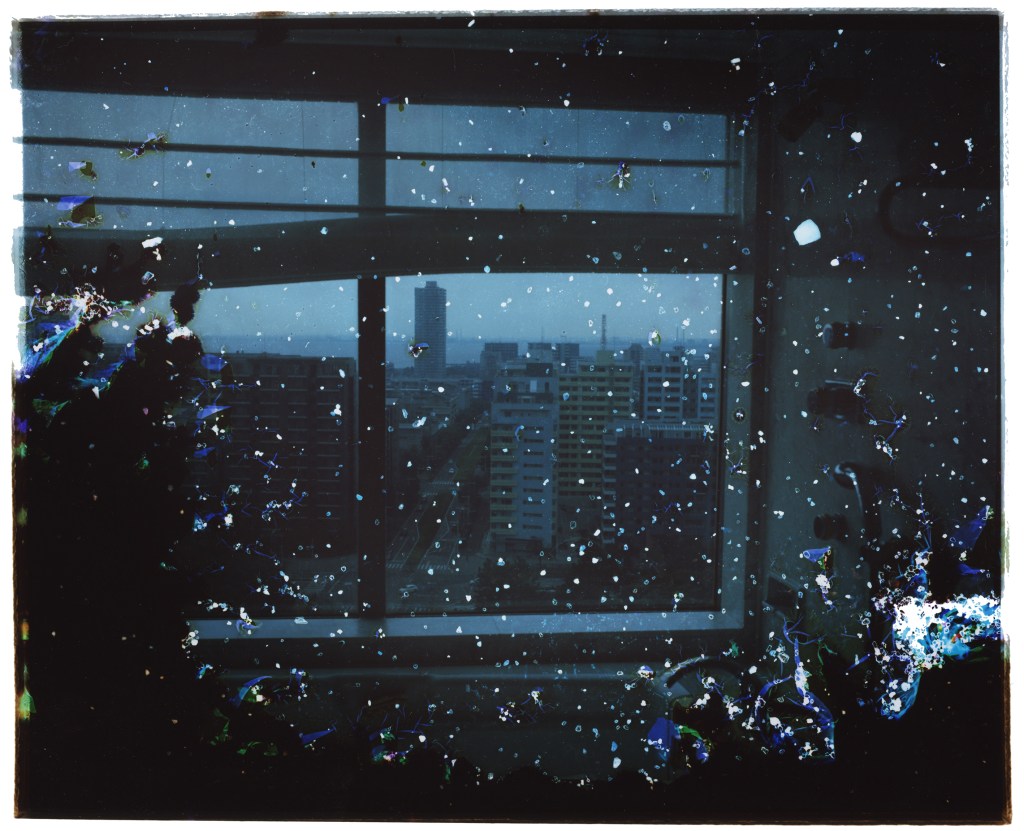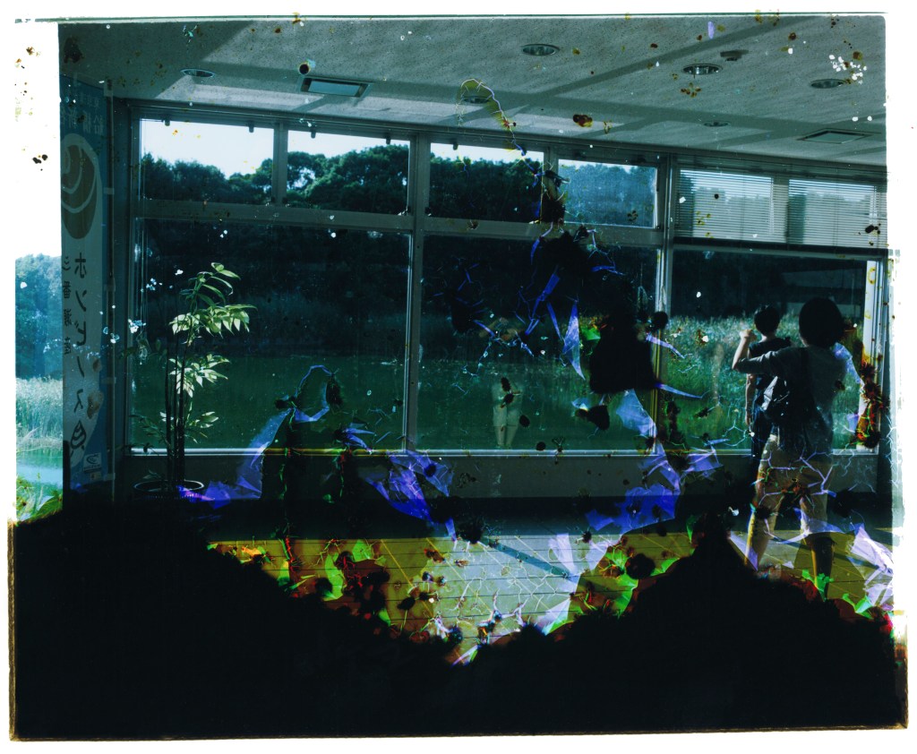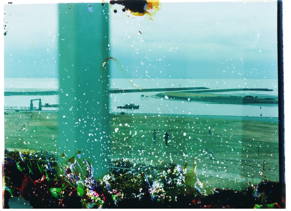 Glass was used as a photosensitive plate in the early history of photography, and is still used today in various optical machines due to its “transparent” nature. This work photographed the seaside scenery of Inage, and added deterioration due to seawater and mold to the negative film.